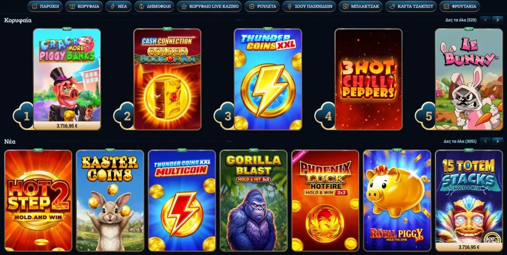 Επιπλέον, προσφέρουμε επίσης ζωντανά game shows όπως Crazy Time, Dream Catcher και Monopoly Live, που σας προσφέρουν μια πιο δυναμική και διασκεδαστική εμπειρία.