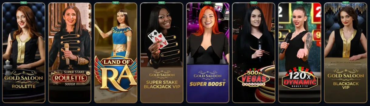 - Ζωντανό Blackjack: Ζήστε το πιο δημοφιλές παιχνίδι χαρτιών στον κόσμο με VIP τραπέζια για αποκλειστικούς παίκτες.